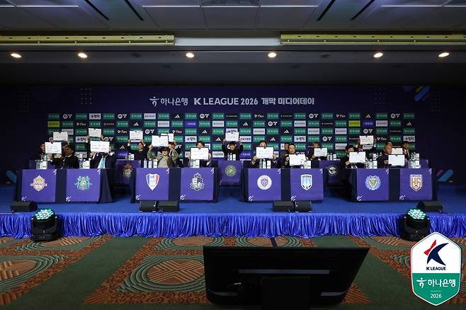 한국프로축구연맹은 25일 오후 서울시 서대문구 홍은동 스위스 그랜드호텔에서 하나은행 K리그2 2026 미디어데이를 개최했다. 이번 시즌부터 17개 팀으로 확대된 K리그2에 참가하는 17개 팀 감독들이 행사에 참석해 자리를 빛냈다.
