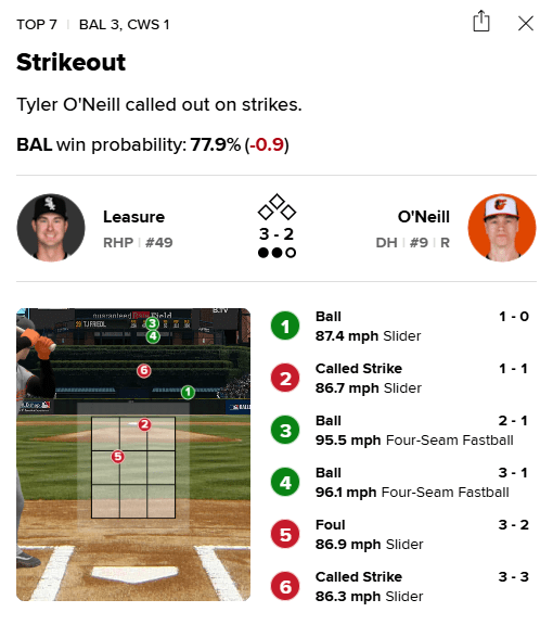 ABS의 판독 결과는 스트라이크. 그것도 스트라이크 존 한복판에 꽂힌, 의심의 여지라곤 하나도 없는 명백한 스트라이크였다. 머진스키는 억울하게 볼을 기록할 뻔했지만, ABS 챌린지 덕분에 스트라이크 하나를 늘렸다.