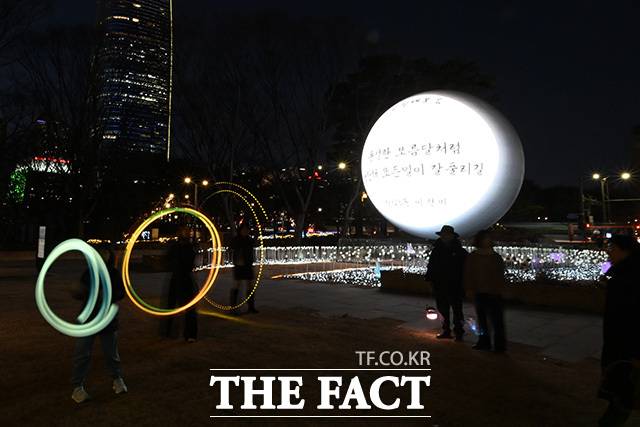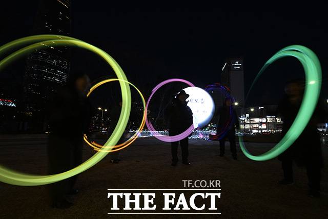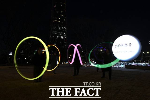 석촌호수서 대보름 맞이 'LED 쥐불놀이' [TF사진관]