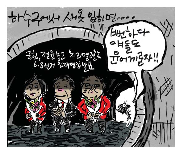 [최경락 만평] 하수구에서 새 옷 입히면… 최경락 2026. 2. 25. 20:33 음성으로 듣기 음성재생 설정 이동 통신망에서 음성 재생 시 데이터 요금이 발생할 수 있습니다. 글자 수 10,000자 초과 시 일부만 음성으로 제공합니다. 남성 여성 느림 보통 빠름 음성 재생하기 닫기 음성 재생 중지 번역 설정 번역beta Translated by kaka i 한국어 - English 영어 日本語 일본어 简体中文 중국어 Nederlands 네델란드어 Deutsch 독일어 Русский 러시아어 Malaysia 말레이시아어 বাঙ্গোল ভাষা 벵골어 tiếng Việt 베트남어 Español 스페인어 اللغة العربية 아랍어 Italiano 이탈리아어 bahasa Indonesia 인도네시아어 ภาษาไทย 태국어 Türkçe 튀르키에어 Português 포르투갈어 Français 프랑스어 हिन्दी 힌디어 닫기 번역중 Now in translation 글씨크기 조절하기 글자크기 설정 파란원을 좌우로 움직이시면 글자크기가 변경 됩니다. 가 매우 작은 폰트 작은 폰트 보통 폰트 큰 폰트 매우 큰 폰트 가 이 글자크기로 변경됩니다. (예시) 가장 빠른 뉴스가 있고 다양한 정보, 쌍방향 소통이 숨쉬는 다음뉴스를 만나보세요. 다음뉴스는 국내외 주요이슈와 실시간 속보, 문화생활 및 다양한 분야의 뉴스를 입체적으로 전달하고 있습니다. 닫기 인쇄하기 Copyright © 저작권자 © 중부일보 - 무단전재 및 재배포 금지