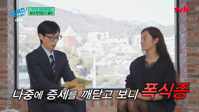 허가윤은 “힘든 과정을 버티다가 몸이 망가지게 됐다”며 “불면증으로 시작됐다가 폭식증이라는 병이 됐다”고 밝혔다. 이어 “도시락이나 빵, 샌드위치 등 편의점에서 있는 거 다 쓸었다. 과자도 다 담고 두 번째가고 세 번째 가고 했다”며 주체할 수 없던 안타까운 상황을 설명했다.