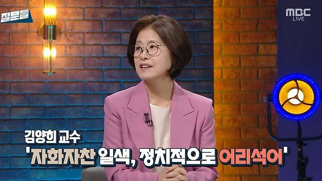 트럼프의 국정연설에서 가장 인상적인 장면에 대해 김양희 교수는 "듣고 싶은 말보다는 하고 싶은 말만 배설하는 구나 싶었다"라고 말했다.
