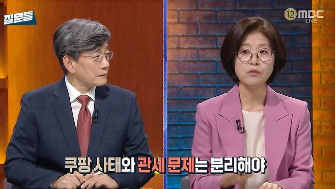 "이것을 불공정으로 해서 301조를 여기다 걸어버릴 가능성이 있냐"는 손석희의 질문에 김 교수는 "구분할 필요가 있는게 임시 대표가 출석한 곳은 의회고 301조를 조사하는 곳은 USTR(미국 무역대표부)이다. 직접적으로 연결시키지 않고 분리해서 볼 필요가 있다"라고 지적했다. 이어 "쿠팡이 문제 제기하는 것이 우리가 봤을 때 부당한 것도 있다는 것을 적극적으로 얘기해야 한다"라고 주장했다.