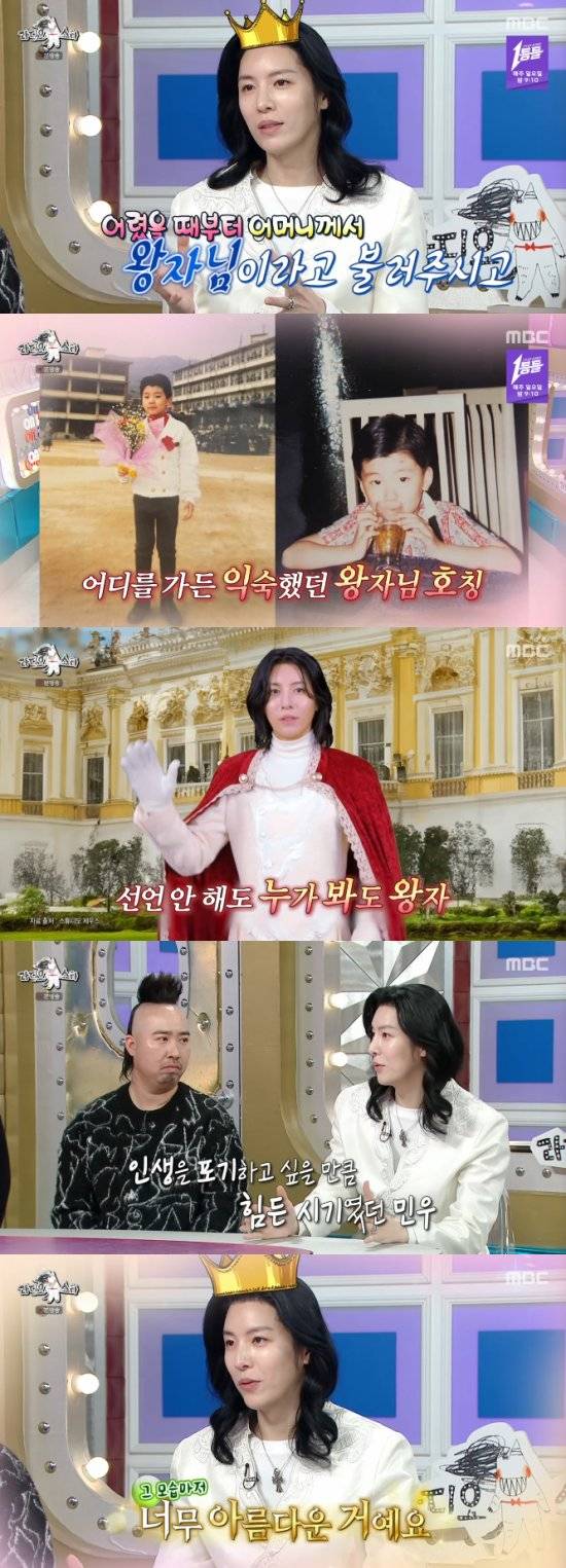 그리고 장도연은 노민우에게 "어릴 때부터 왕자였다고?"라면서 웃었고, 노민우는 "어렸을 때부터 어머니께서 저를 '왕자님'이라고 했고, 어딜가나 왕자님 소리를 들었다. 어렸을 때는 제가 진짜 왕자라고 생각했다"고 했다.