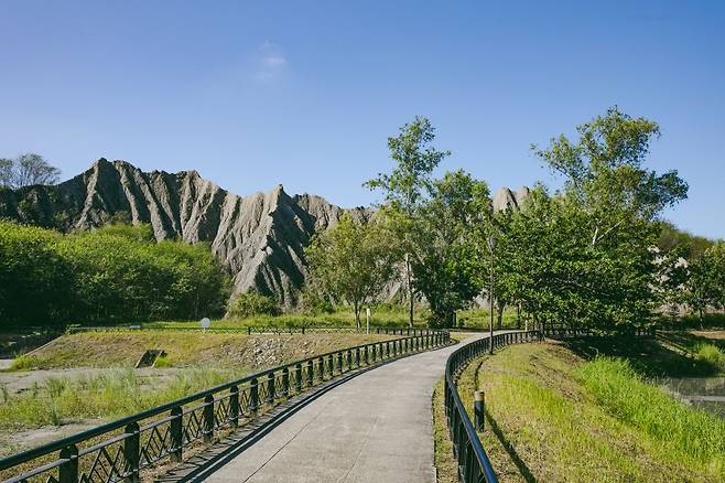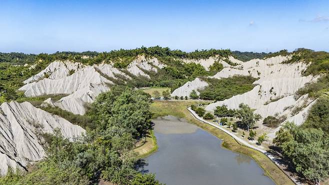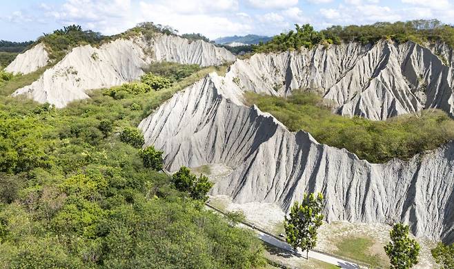 28번 도로를 따라가다 보면 삐죽삐죽 날카롭게 솟은 능선들이 보이기 시작한다. 오랜 세월 침식 작용이 빚어낸 진흙 화산들이다. 달의 표면처럼 황량하고 기묘한 모양을 하고 있어서 티엔랴오 월세계(Tianliao Moon World)라는 이름이 붙었다. 이곳에 있는 약 20개의 회색 산을 보고 있으면 지구를 떠나 다른 행성에 와 있는 듯한 착각이 든다.