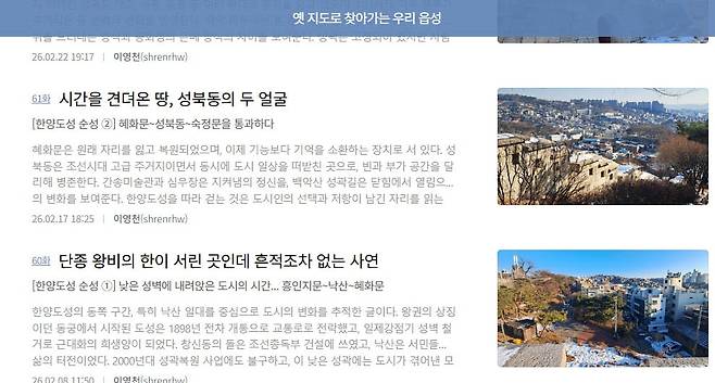 | ▲ 2025 하반기 올해의 뉴스게릴라 수상자인 이영천 기자의 시리즈 '옛 지도로 찾아가는 우리 읍성' |