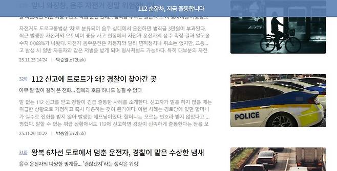 | ▲ 2025 하반기 올해의 뉴스게릴라 수상자인 박승일 기자의 시리즈 '112 순찰자, 지금 출동합니다' |