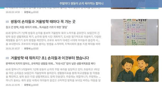 | ▲ 2025 하반기 올해의 뉴스게릴라 수상자인 유영숙 기자의 시리즈 '주말마다 쌍둥이 손자 육아하는 할머니' |