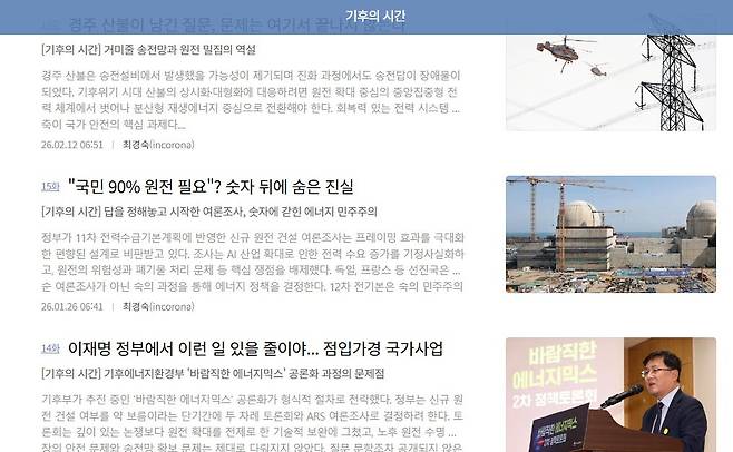 | ▲ 2025 하반기 올해의 뉴스게릴라 수상자인 최경숙 기자의 시리즈 '기후의 시간' |