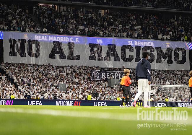 “인종차별을 반대한다.” 레알 마드리드 팬들이 대형 현수막을 통해 지난 1차전에서 인종차별 발언을 들었던 비니시우스를 지지했고, 비니시우스는 결승골로 화답했다.