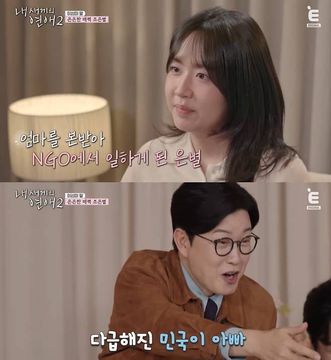 이어 이성미의 딸 조은별이 등장했다. 캐나다에서 대학을 나온 후 NGO 단체에서 근무 중이라는 조은별의 발언에 김성주는 "빨리 전화 줘라. 메기로 빨리 민국이 오라고 해라"라고 재차 강조해 웃음을 자아냈다.