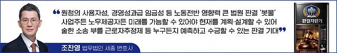 최근의 판결 경향을 보면서 드는 생각이다. 기업을 경영하는 사업주이든 노무에 종사하는 노무제공자이든 미래를 가늠할 수 있어야 현재를 계획하고 설계할 수 있다. 누구든지 예측할 수 있고 또 수긍할 수 있는 보편타당한 판결이 선고되기를 기대해 본다.