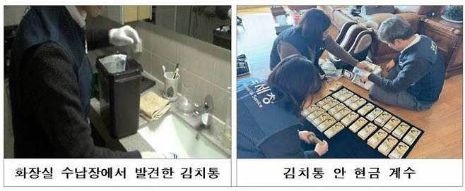 딸이 현금 1억 원이 든 가방을 던지며 저항하거나 화장실 수납장 속 김치통에 현금다발을 숨기는 등 기상천외한 은닉 수법이 동원됐지만, 국세청은 끝까지 수색을 벌여 총 81억 원을 징수했다고 밝혔습니다.