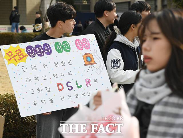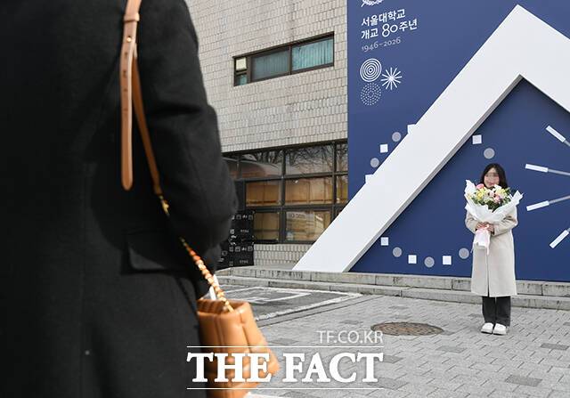 [더팩트 | 박상민 기자] 26일 오전 서울 관학구 서울대학교에서 입학식이 열린 가운데 한 입학생 가족이 기념사진을 찍고 있다.