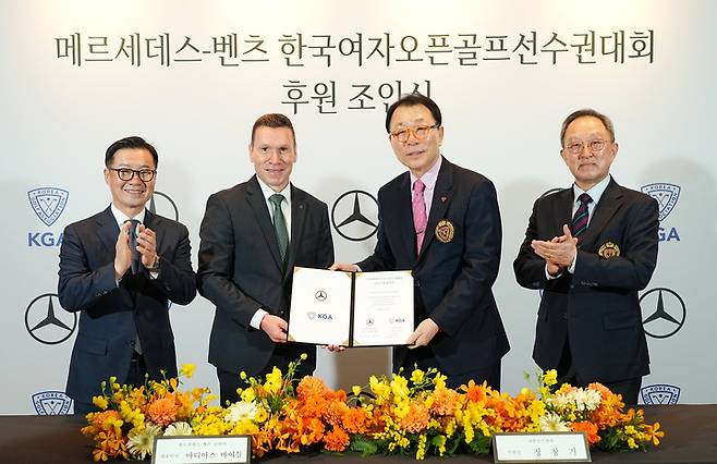 메르세데스-벤츠 코리아는 25일 서울 신라호텔에서 조인식을 열고 대한골프협회와 '한국여자오픈골프선수권대회' 스폰서십을 체결했다.