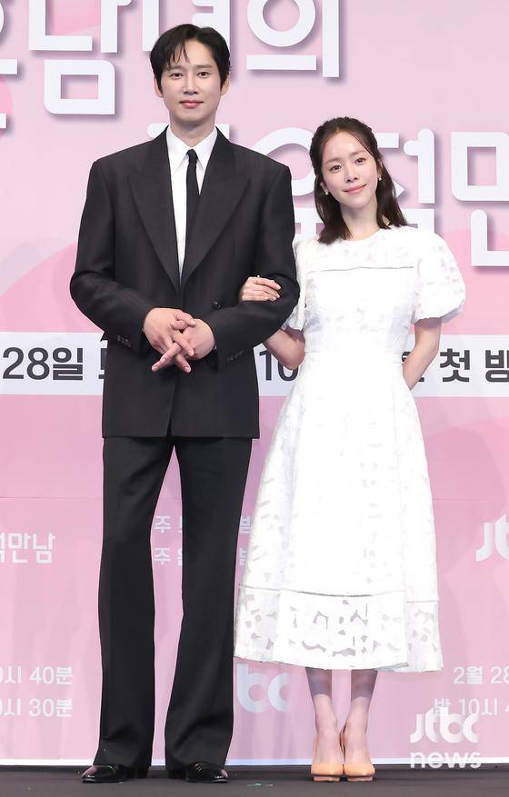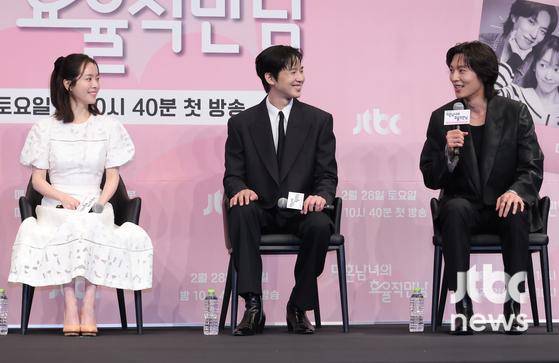 26일 오후 서울 더링크서울 트리뷰트 포트폴리오 호텔에서 JTBC 새 토일드라마 '미혼남녀의 효율적 만남' 제작발표회가 열렸다. 이날 현장에는 이재훈 연출과 배우 한지민, 박성훈, 이기택이 참석했다.