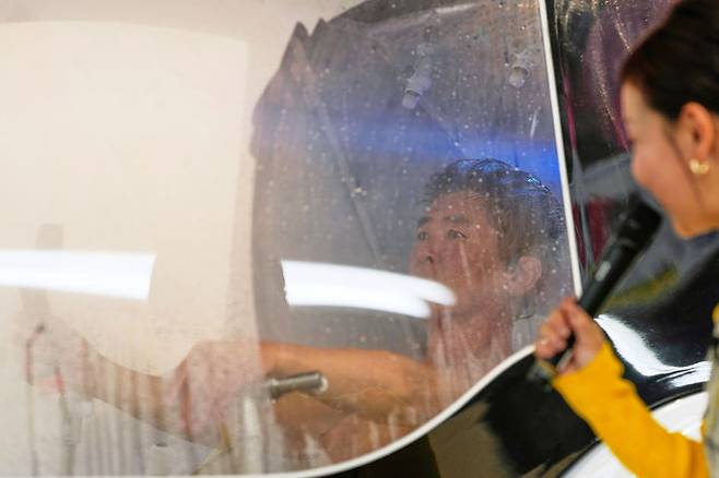 '인간 세탁기' 체험하는 일본 방송인