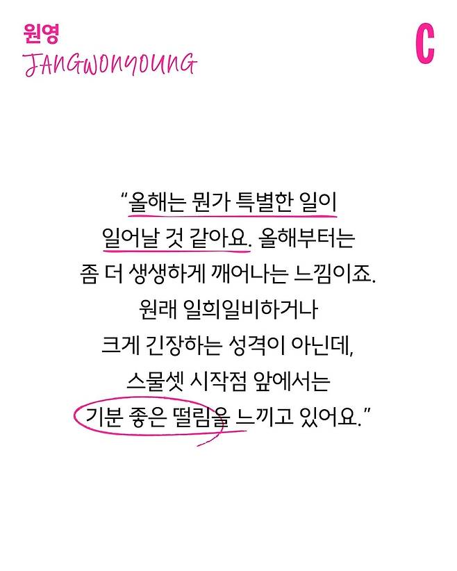 함께 진행된 인터뷰에서 장원영은 스물셋을 맞이하는 설렘을 진솔하게 털어놓았다.