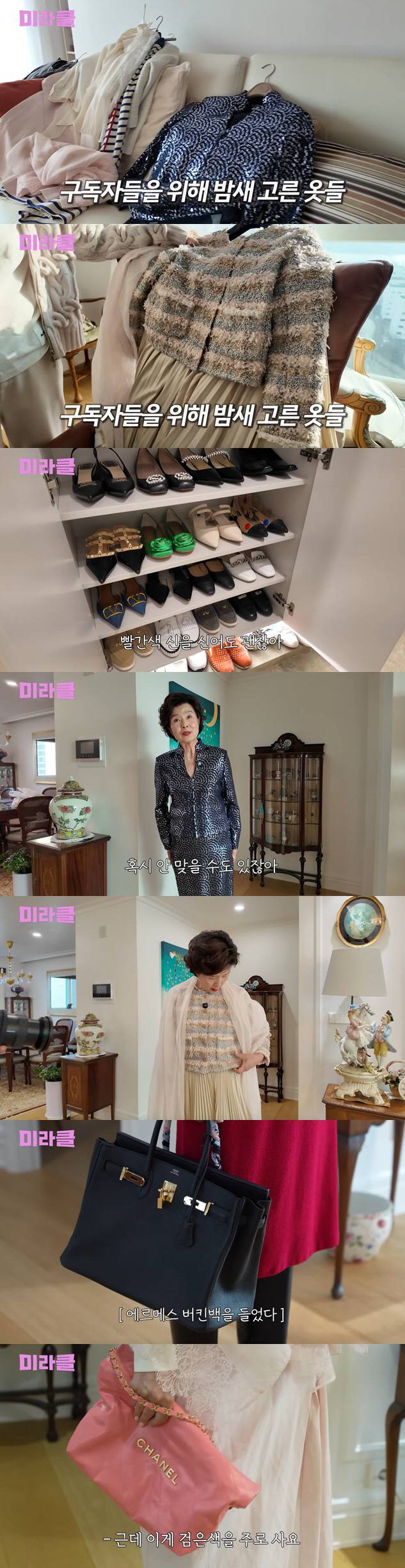 이날 특히 눈길을 끈 것은 핑크빛 계열의 샤넬 재킷. 제작진은 해당 자켓을 보며 "이 자켓 진짜 예쁜 거다. 대박이다. 쇼츠에 올리면 100만 뷰 가겠다. 구하기 힘든 아이템"이라고 감탄했다.