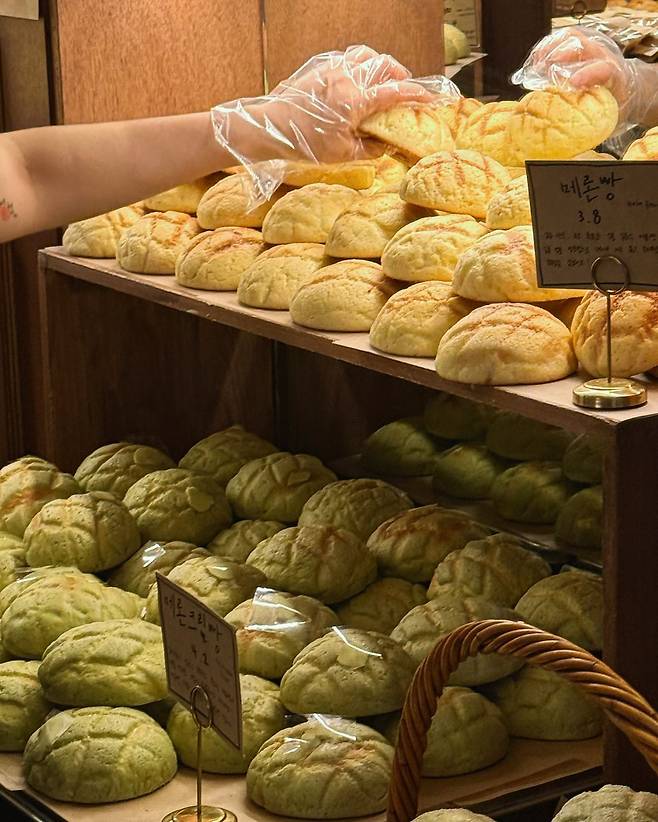 힙지로에서 메론 빵으로 히트 친 빵집 ‘아소토 베이커리’도 미미의 레이더에 포착된 곳입니다. 일본 전통 방식으로 구워낸 메론빵을 중심으로, 야끼소바빵, 소금빵, 카레빵까지 현지의 정서를 담은 베이직 메뉴와 트렌디한 메뉴를 유연하게 넘나드는 라인업을 갖추고 있습니다. 매혹적인 빵 진열대에서 고민을 멈출 수 없었던 미미는 시그니처인 메론 소금빵과 메론 크림빵, 초코 소라빵 등을 포함해 8만 원대의 빵 플렉스를 인증했고요.