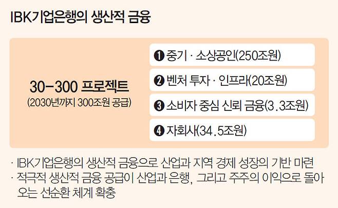이를 구체화하기 위해 2030년까지 총 300조원 이상 자금을 생산적 금융 부문에 공급하는 일명 ‘30-300 프로젝트’를 가동했다. 단순한 대출 지원을 넘어 벤처 투자, 펀드 조성 등 모험자본 공급을 통해 첨단·혁신 산업과 스타트업 생태계를 육성하겠다는 복안이다.