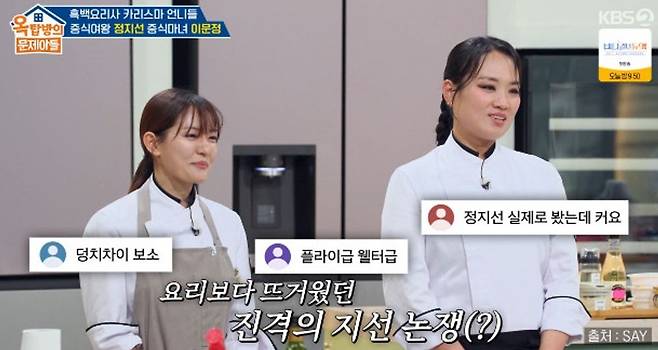 26일 KBS2TV ‘옥탑방의 문제아들’에선 ‘흑백요리사’에서 활약한 정지선과 이문정 셰프가 출연해 토크를 펼쳤다.