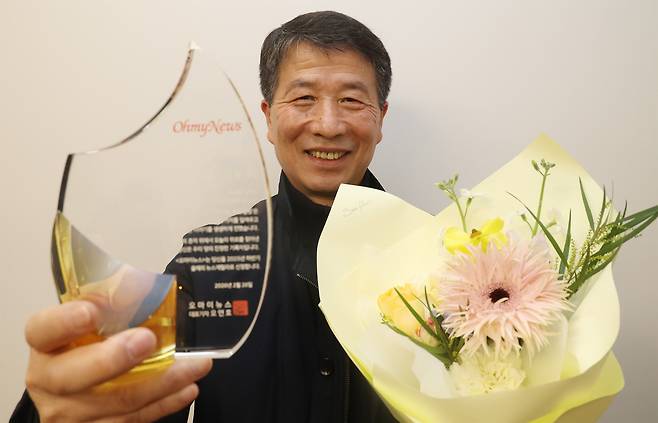 | ▲ 2025 오마이뉴스 하반기 올해의 뉴스게릴라상 수상한 박승일 기자 박승일 기자가 26일 오후 서울 마포구 <오마이뉴스> 서교동 마당집에서 열린 '2025년 하반기 올해의 뉴스게릴라상 시상식'에서 올해의 뉴스게릴라상을 수상했다. ⓒ 유성호 |