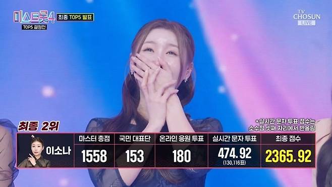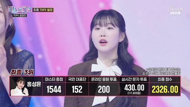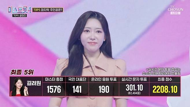 최종 결과 TOP5는 5위 길려원, 4위 윤태화, 3위 홍성윤, 2위 이소나, 1위 허찬미였다.