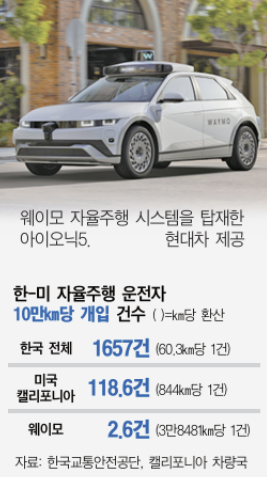 “평균 60㎞마다 운전자가 개입”…韓 자율주행차, 美와 14배 격차
