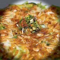 9. 보리새우를 골고루 뿌려 전 위에 달라붙게 한다.