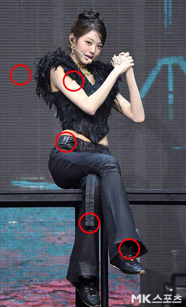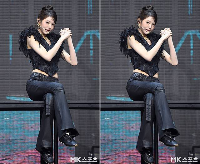 이날 아이브 멤버 장원영은 신곡 ‘블랙홀’ 무대에서 블랙 크롭 톱과 가죽 팬츠가 강조한 선명한 실루엣으로 무릎을 올린 채 테이블 위를 장악하는 동작으로 시선을 사로잡았습니다.
