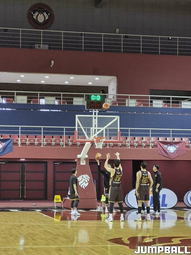 경기 종료 후 약 15분간 LG 선수 전원이 코트 위에 남아 슛 감각을 다듬었다. 백투백 일정으로 인해 경희대 선승관 인근 숙소에 머무는 상황이었다. 숙소와 체육관이 가까워 이동 부담이 크지 않았고, 별도의 훈련 공간이 없는 점도 코트에 남게 된 배경이었다.
