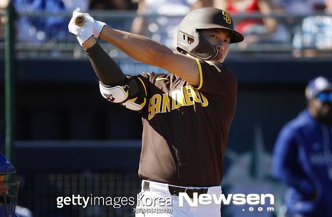 샌디에이고 파드레스 송성문은 2월 27일(한국시간) 미국 애리조나주 굿이어의 굿이어 볼파크에서 열린 '2026 메이저리그 스프링캠프' 신시내티 레즈와 시범경기에서 안타를 기록했다.