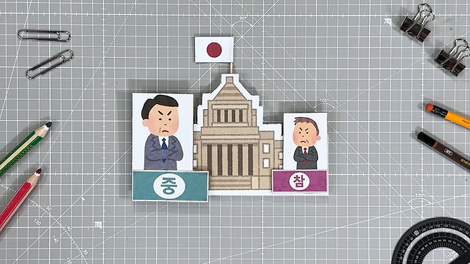 일본은 양원제 국가로 하원 역할을 하는 중의원과 상원 역할을 하는 참의원이 있습니다. 여타 양원제 국가들과 마찬가지로 민의를 직접적으로 반영하는 하원, 중의원이 더 중요하죠. 중의원에서 확보한 의석수가 실질적인 일본 국회 장악력을 나타낸다고 볼 수 있어요.