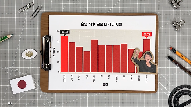 가장 높은 지지율을 기록했던 건 2001년 고이즈미 총리의 88.0%입니다. 다카이치 총리가 82.0%로 전체 2위를 기록했어요.