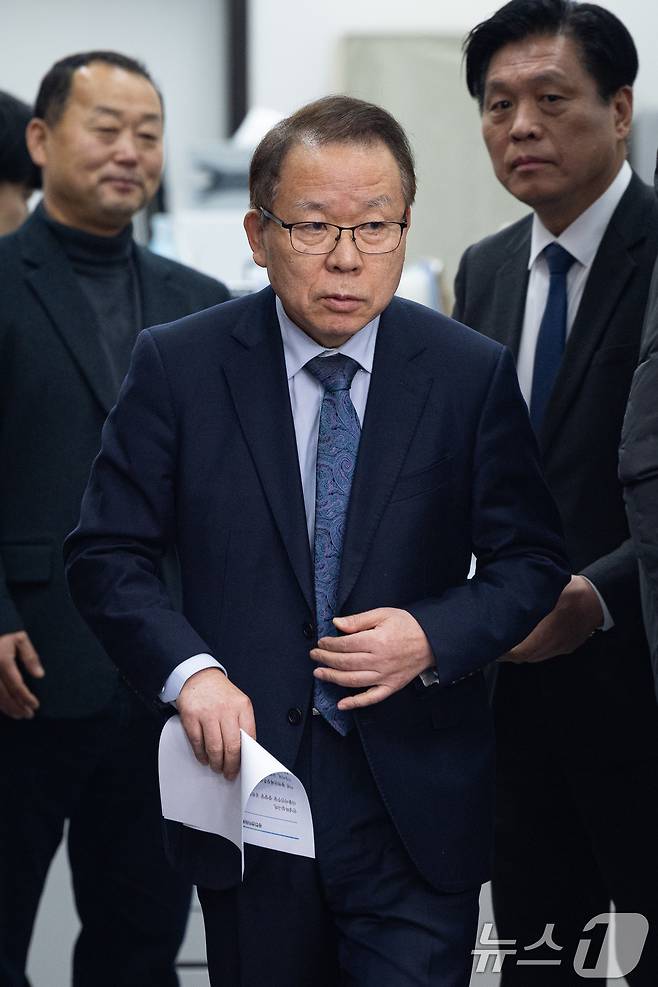 (서울=뉴스1) 유승관 기자 = 김이수 더불어민주당 중앙당 공천관리위원장이 27일 서울 여의도 국회에서 1차 공천 심사 결과를 발표하기위해 입장하고 있다.