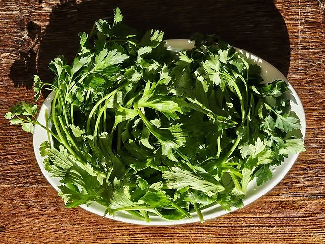 고수잎, 이탈리아 파슬리, 셀러리 잎(기호의 향신채 또는 제철의 향신채) 70g