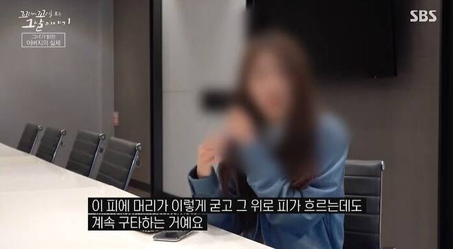 "저희 언니도 맞다가 머리가 이만큼이 찢어져서, 이 피에 머리가 이렇게 굳고 그 위로 피가 흐르는데도 계속 구타하는 거예요. 그날도 제가 언니 껴안고 머리가 이만큼이 찢어져서, 벽에 피가.. 다 튀기고 그런 상황인데도 병원에 데려가 주지 않는 거예요."