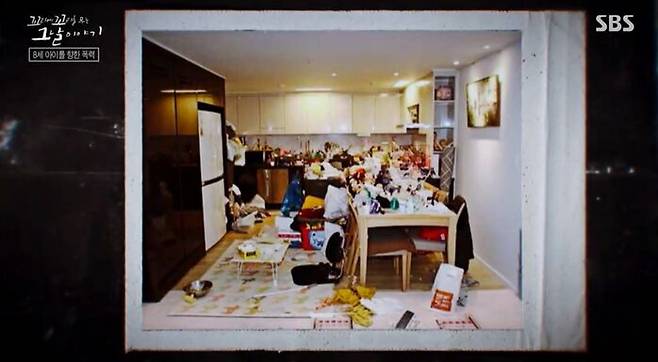 형사들이 이모 부부 집에 갔어. 집안 여기저기에는 학대의 흔적이 고스란히 남아 있었어. 거실은 온갖 쓰레기가 쌓여있는 가운데에, 여기저기 혈흔이 묻은 종이컵이나 휴지가 있었어. 그리고 집안 곳곳에서 이런 게 발견됐어.