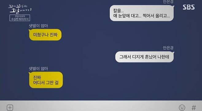 안은경: 칼을… 애 눈 앞에 대고… 찍어서 올리고…