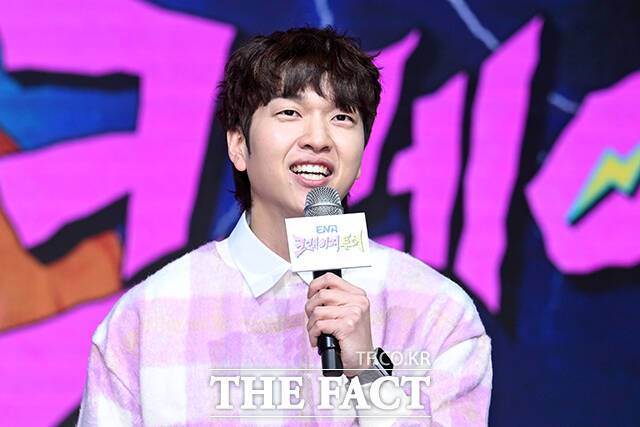[더팩트ㅣ서예원 기자] 개그맨 유재필이 27일 오후 서울 마포구 상암DMC 푸르지오 S-city에서 열린 ENA 새 예능프로그램 ‘크레이지 투어’ 제작발표회에 참석해 진행을 하고 있다.