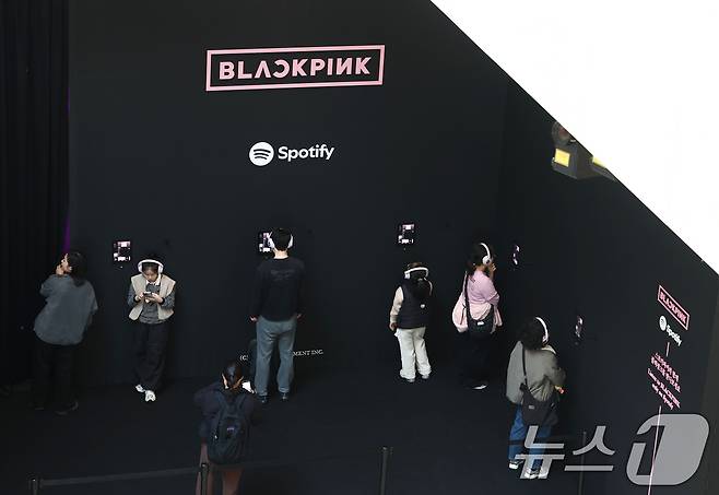 (서울=뉴스1) 김민지 기자 = 27일 오후 서울 용산구 국립중앙박물관에서 관람객들이 '국중박 X 블랙핑크' 프로젝트의 일환인 블랙핑크 멤버들이 직접 참여한 유물 오디오 도슨트를 듣고 있다. 행사는 다음 달 8일까지 진행된다. 2026.2.27/뉴스1