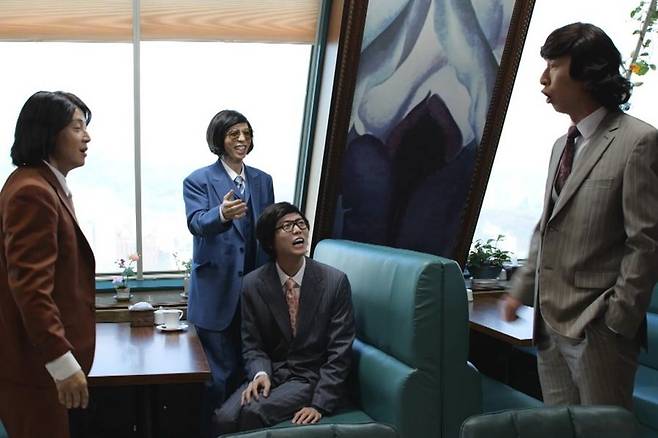 공개된 사진에는 영화 ‘범죄와의 전쟁’에서 툭 튀어나온 듯한 멤버들의 비주얼이 담겨있어 시청자들의 폭소를 유발한다. 유재석과 하하가 어설픈 부산 사투리로 “왔나”라고 외치며 대화를 나누는 가운데 ‘진짜’가 등장해 모두의 시선을 사로잡는다. 김해 출신의 오리지널 경상도인 양상국은 네이티브 사투리를 구사하며 현장을 벌컥 뒤집어 놓는다. 양상국은 “요즘 가짜가 많은데, 내가 오리지널”이라며 기강잡는 모습을 보여준다.