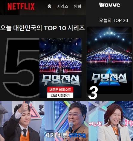 또 OTT 플랫폼에서도 높은 순위에 이름을 올리며 화제성을 증명했다. '무명전설'은 이날 기준 웨이브에서 '오늘의 TOP20'에서 3위, 글로벌 플랫폼 넷플릭스 대한민국 'TOP10 시리즈' 순위에서 5위를 기록했다.