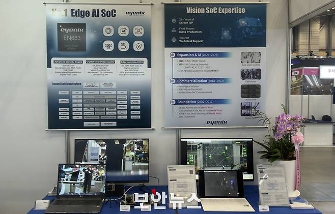 [부산=보안뉴스 엄호식 기자] 첨단 이미지 신호처리와 AI SoC(System on Chip)에 집중하는 팹리스 반도체 기업으로 카메라와 센서가 필요한 모든 곳에 ‘지능형 비전’을 제공하는 ‘아이닉스’는 ‘DSK 2026’에서 IP SoC ‘EN675’와 AI 비전 SoC ‘EN683’을 선보였다.