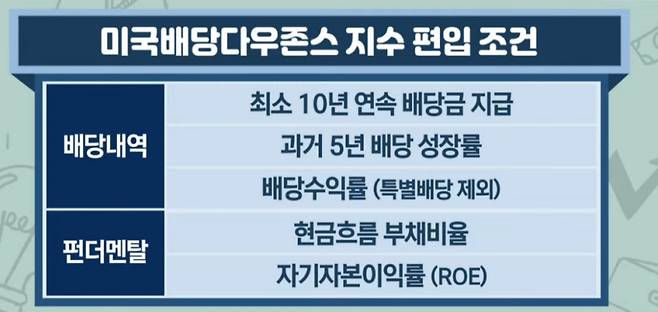 TIGER 미국배당다우존스 ETF는 단순한 고배당 전략, '배당 함정(Dividend Yield Trap)'에 갇히지 않는 종목들을 선정합니다. 지수 방법론상으론 10년 이상 연속 배당 흐름과 최근 5년 동안 배당 성장을 살펴보고, 또 펀더멘탈적으로는 현금 흐름 대비 부채 수준이나 ROE 등을 살펴봅니다. 결국 배당을 꾸준히 해왔으며, 앞으로도 이를 더 성장시킬 것으로 예상되는 탄탄한 기업들로 구성되어 있다고 할 수 있습니다.