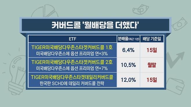 세 상품의 가장 큰 차이점은 옵션을 얼마나 자주 매도하느냐의 차이입니다. 배당 수익률도 차별화되는데, 단순히 높으면 좋다고 하기보단 필요한 현금 흐름이나 투자 성향에 따라 상품을 살펴보는 것이 필요합니다.