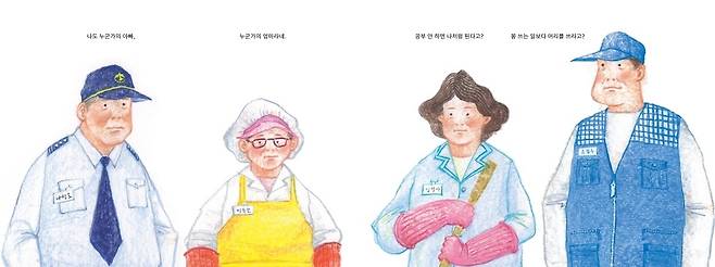 그러나 이 그림책은 단단하고 명랑한 서사로 끝내 활보한다. "나도 이름은 있어" 말하는 인물들은 온전한 자기 존재("나도 누군가의 엄마라네")를 밝히고, 나의 일이 사회에 필수 역할을 하므로 냉대 받을 이유가 없음을 증명한다. "아줌마, 아저씨"로 불리는 현실을 솔직히 드러내면서도, "몸 쓰는 일보다 머리를 쓰라고?" 내뱉는 몰상식한 발언들을 "말도 안 되는 소리"라고 유쾌하게 일축한다.