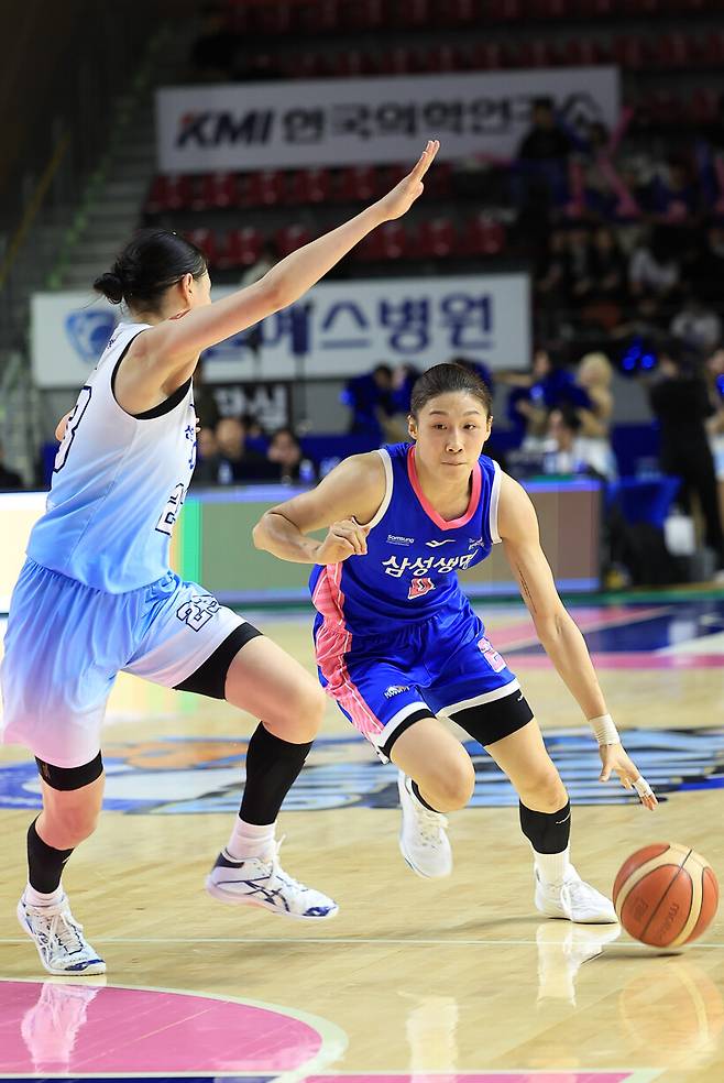 용인 삼성생명은 27일 용인체육관에서 펼쳐진 BNK금융 2025~2026 여자프로농구 인천 신한은행과의 6라운드 맞대결에서 59-50으로 승리했다.