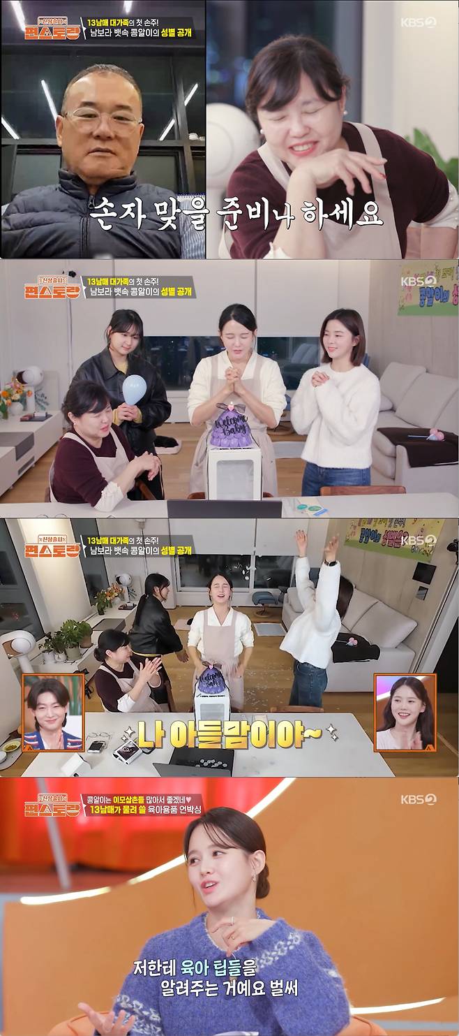 남보라는 "저도 사실 딸을 원한다"라며 콩알이의 성별을 공개하기로 했다. 커다란 풍선이 터지고 그 안에 있는 색깔은 바로 파란색이었다. 남보라는 "아들맘입니다"라며 기뻐했다.